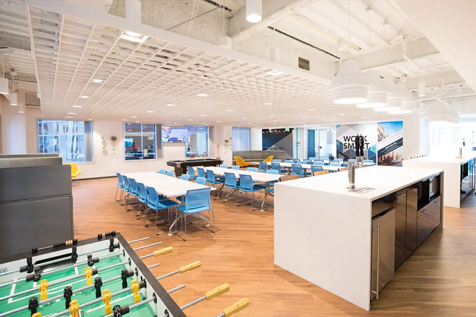 Trendy offices offer plenty of space for employees. Part of building a healthier work environment involves rethinking the physical work surroundings. It is important that employees do not feel trapped at their desks. Instead, companies must start to promote onsite gyms, walking meetings, as well as standing desks.