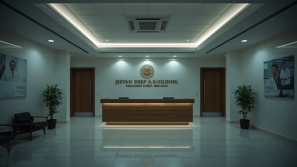 HLK Infrastructure Pvt Ltd. completed the office interior fit-out project at Jeevan Deep Building, Parliament Street, New Delhi, on behalf of Nehru Yuva Kendra Sangathan (NYKS) under a Hindustan Prefab Limited (HPL) contract.