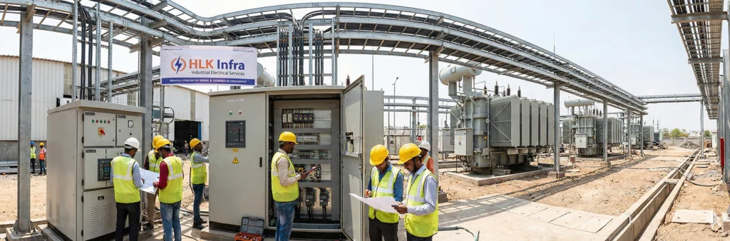 HLK Infrastructure provides Electrical EPC Services in India, which support industries to function without disruptions. Our team provides comprehensive Industrial Electrical Services, which include safe solutions for high-capacity electrical systems and heavy-duty installations, and efficient load management services. Our solutions use Electrical Maintenance Services in India to decrease operational downtime while boosting productivity and completing projects on time with budget control.